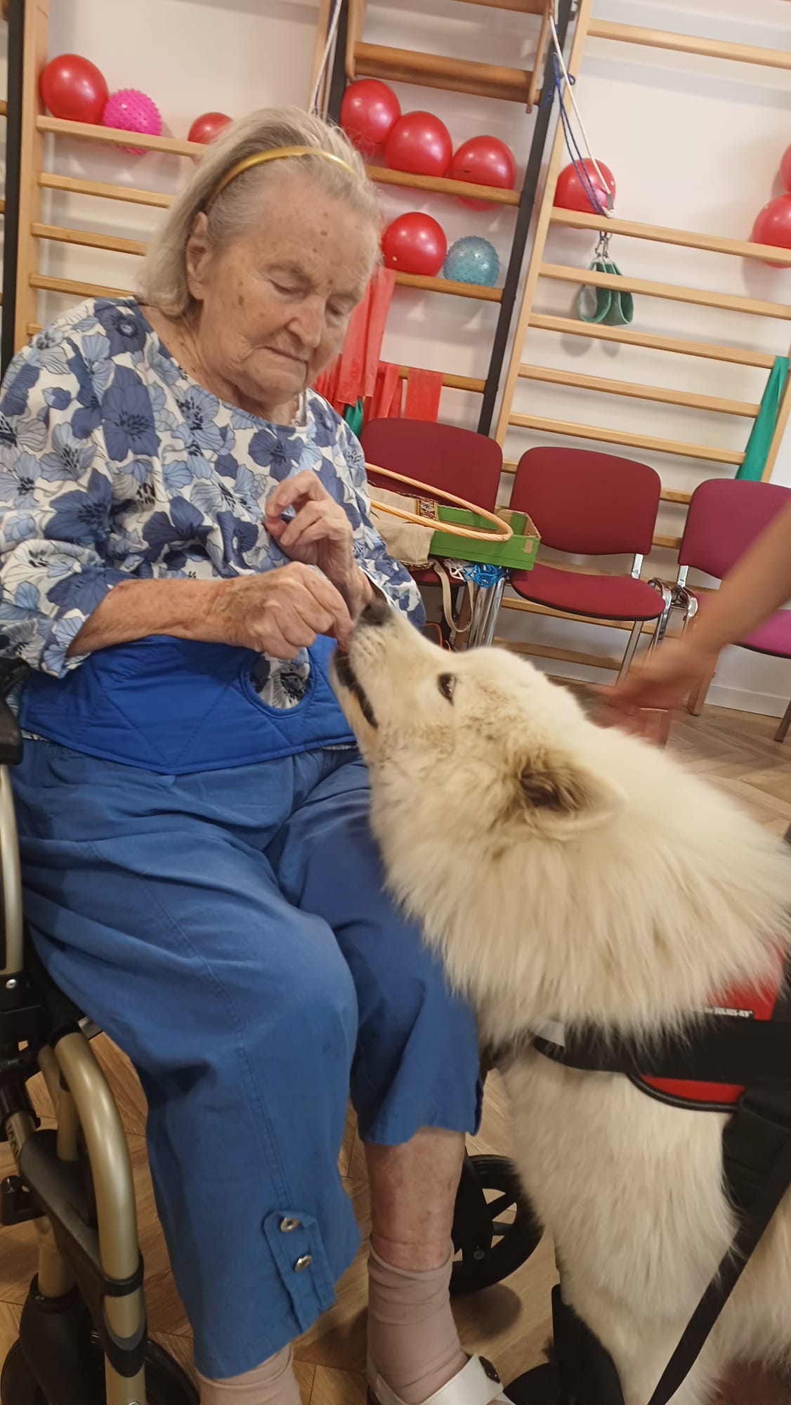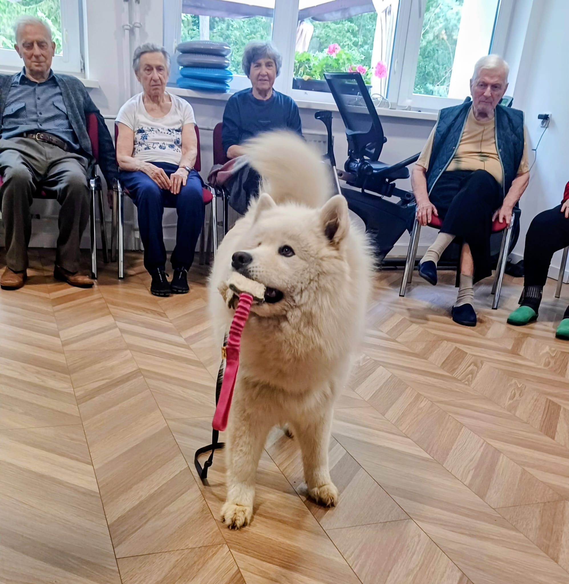 Niezastąpiona Bella – nasza samoyedzia przyjaciółka – skradła serca wszystkich. Jej obecność była jak balsam dla duszy. #Dogoterapia