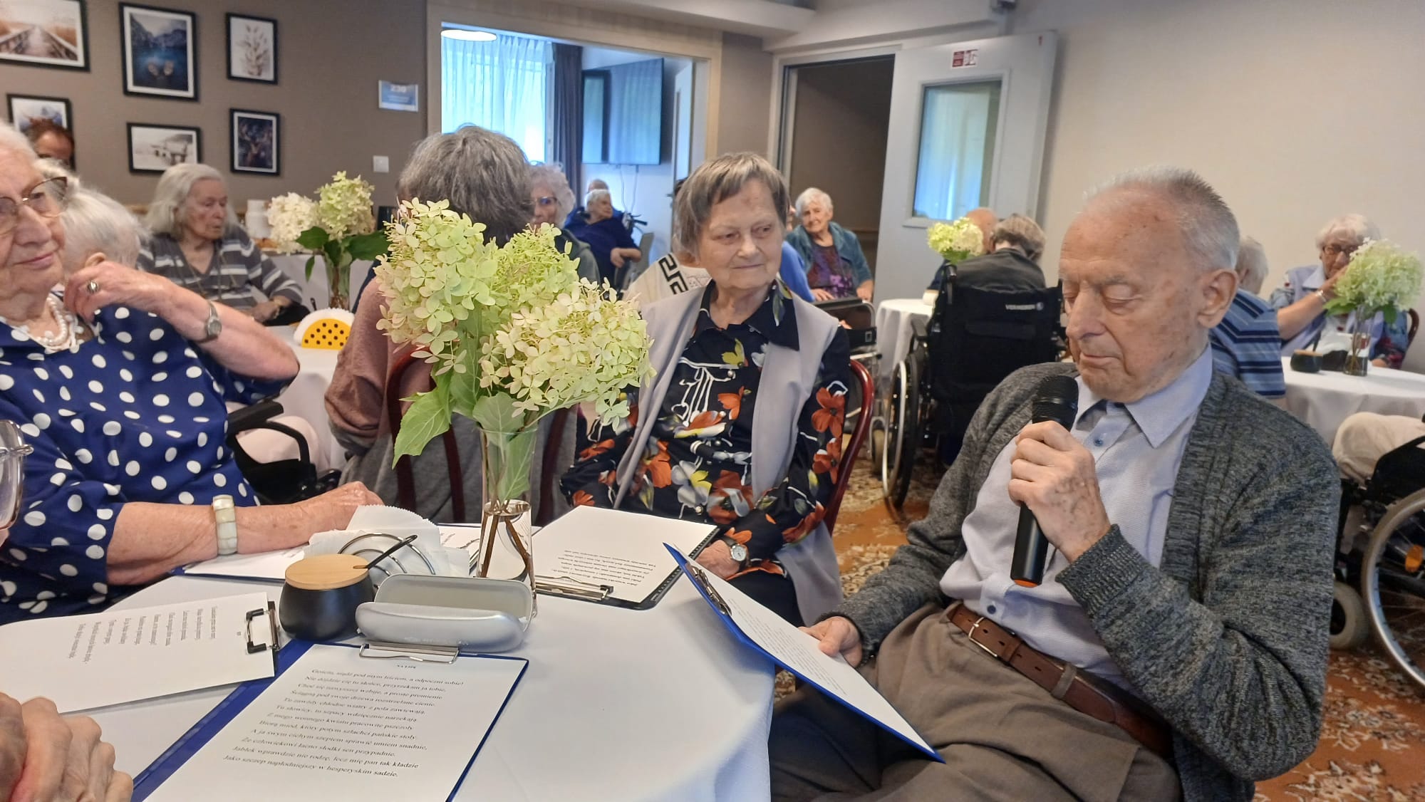Podczas spotkania wspólnie z seniorami czytaliśmy pieśni, fraszki oraz Psałterz Dawidów. Nasi goście również dołączyli do lektury, dzięki czemu wydarzenie nabrało jeszcze większej wartości. Szczególnie wzruszającym momentem było wystąpienie jednej z naszych seniorek, która zaprezentowała swój własny utwór poetycki. 🌿