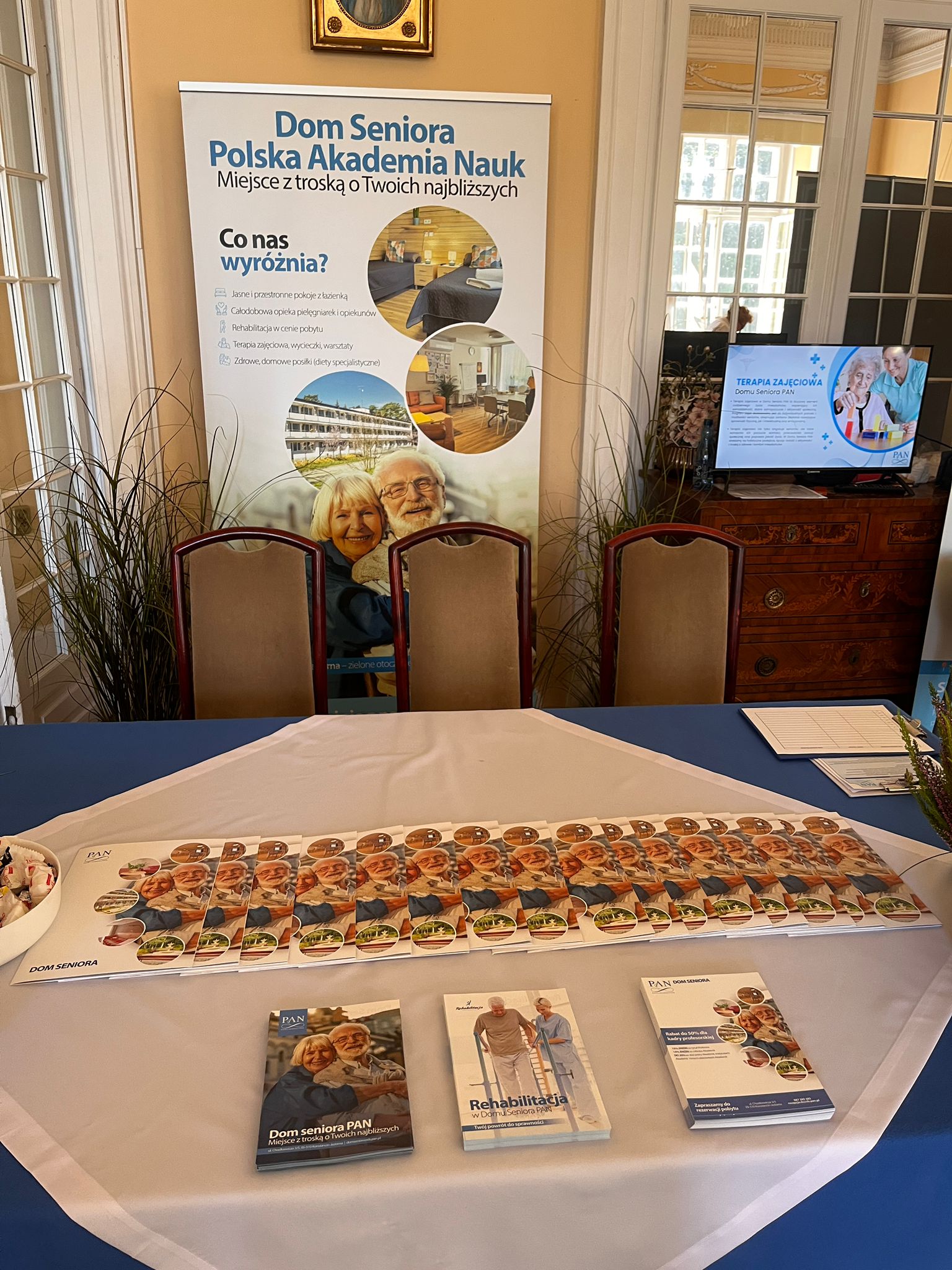 Dużym zainteresowaniem cieszyła się również prezentacja naszego stoiska Domu Seniora PAN, gdzie opowiadaliśmy o naszych działaniach, metodach rehabilitacji i codziennej pracy na rzecz seniorów.