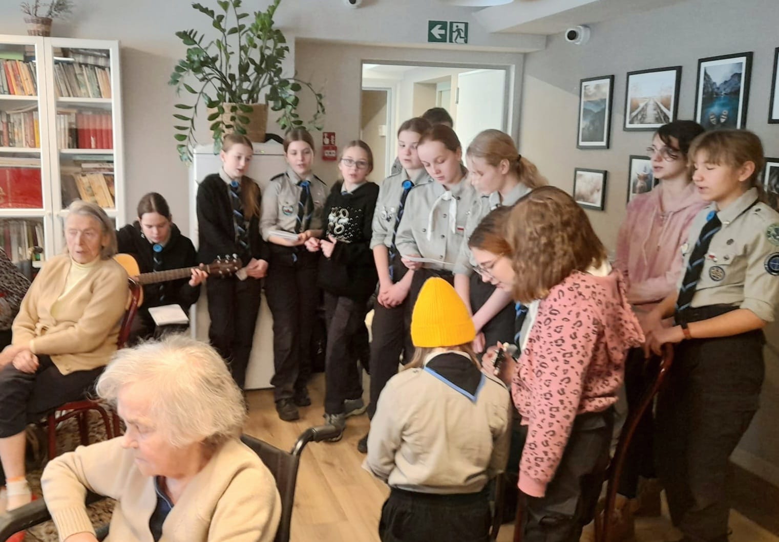 Wspólnie z naszymi mieszkańcami, harcerze grali na gitarze i śpiewali wzruszające obozowo-ogniskowe pieśni harcerskie. 🎸🎶 To było niezwykle piękne i wzruszające spotkanie pełne śpiewu, radości i wzajemnej integracji.