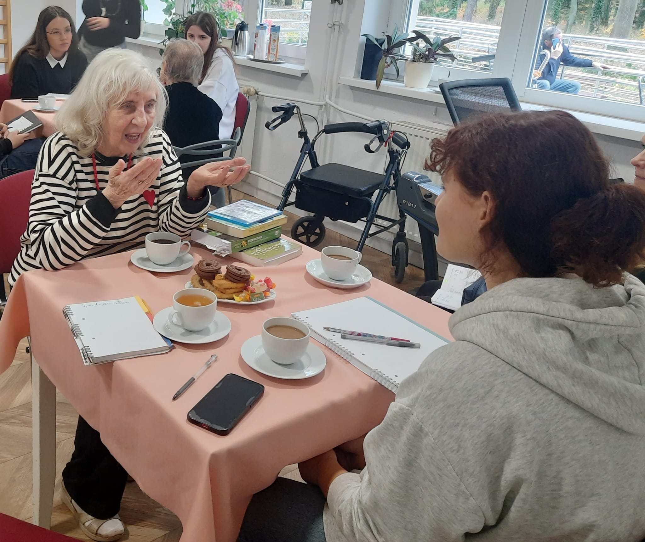 Po zakończonym wywiadzie Pani Profesor Falińska wyraziła wiele pochwał pod adresem uczniów, doceniając ich profesjonalizm oraz autentyczność w podejściu do seniorów. Jako doświadczony nauczyciel akademicki, była mile zaskoczona, widząc, jak młodzież odnosi się do starszego pokolenia. 😊