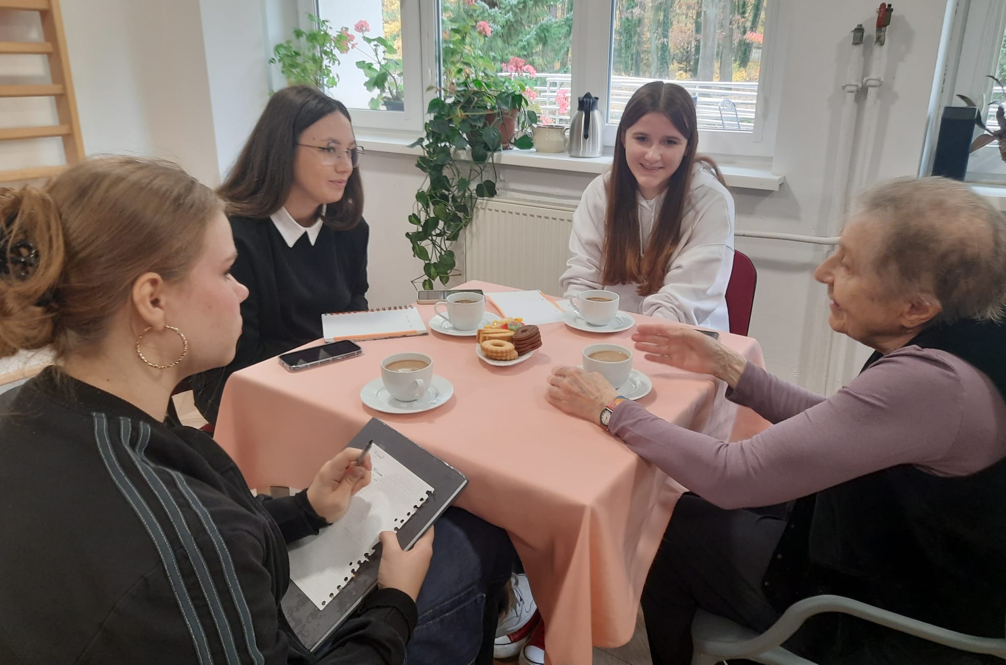 Uczniowie przeprowadzili wywiady z naszymi pensjonariuszami: Panią Profesor Krystyną Falińską, Panią Bożeną Dmoch-Janowską oraz Panem Janem Polańskim. Z tych rozmów ma powstać publikacja wspomnieniowa.