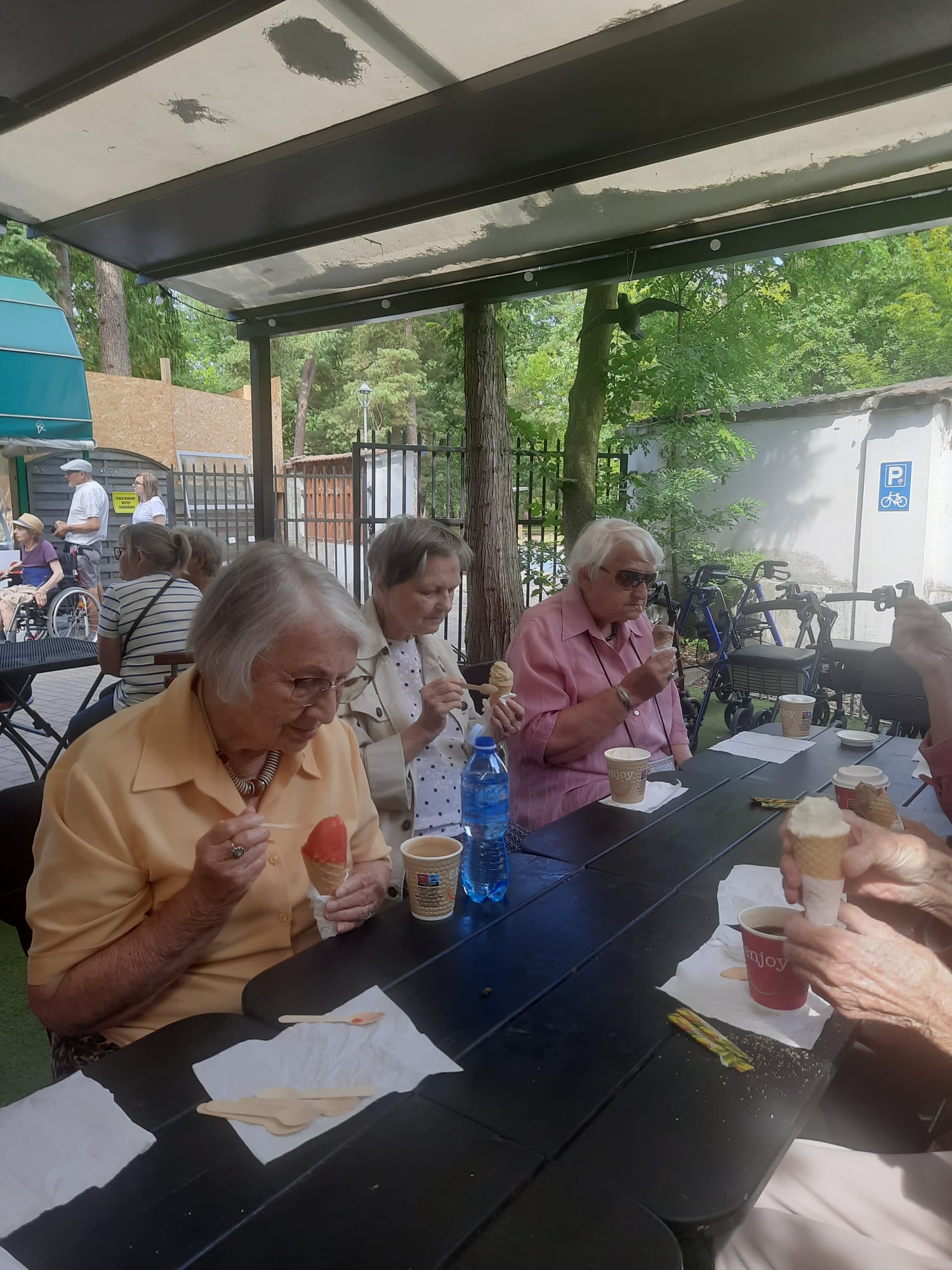 Były serdeczne życzenia od mieszkańców i pracowników, szampan, pyszne ciastka oraz uśmiechy, które rozświetliły całe popołudnie 🌸💫. Pan Dyrektor nie zapomniał również o słodkich upominkach – każdy mógł poczęstować się cukierkiem 🍬.